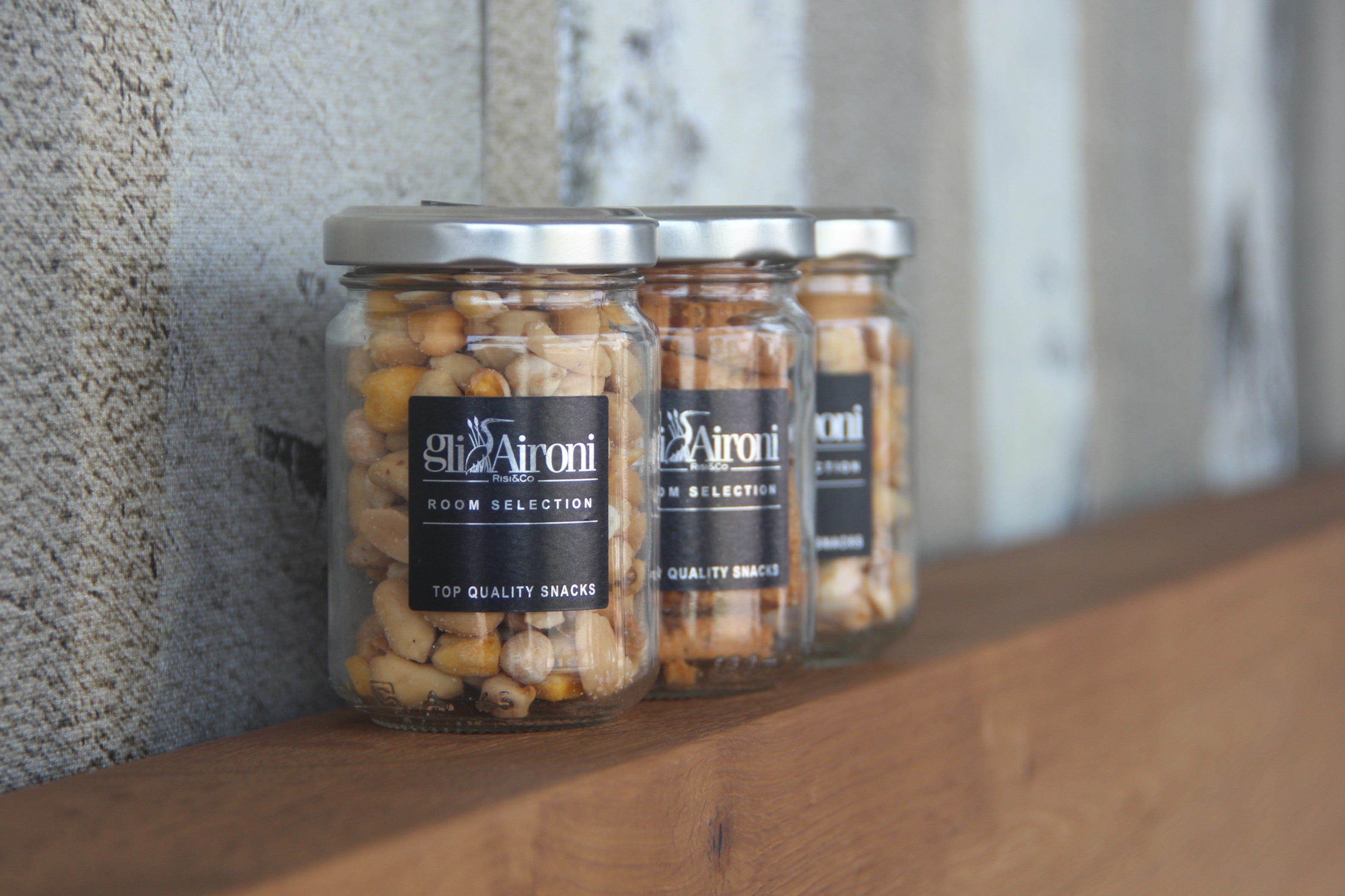 I nostri prodotti, frutto di una selezione rigorosa di materie prime di qualità, vengono serviti nelle migliori strutture alberghiere in Italia e nel mondo come appetizer in assortimento del frigobar o presso i bar per l'aperitivo.