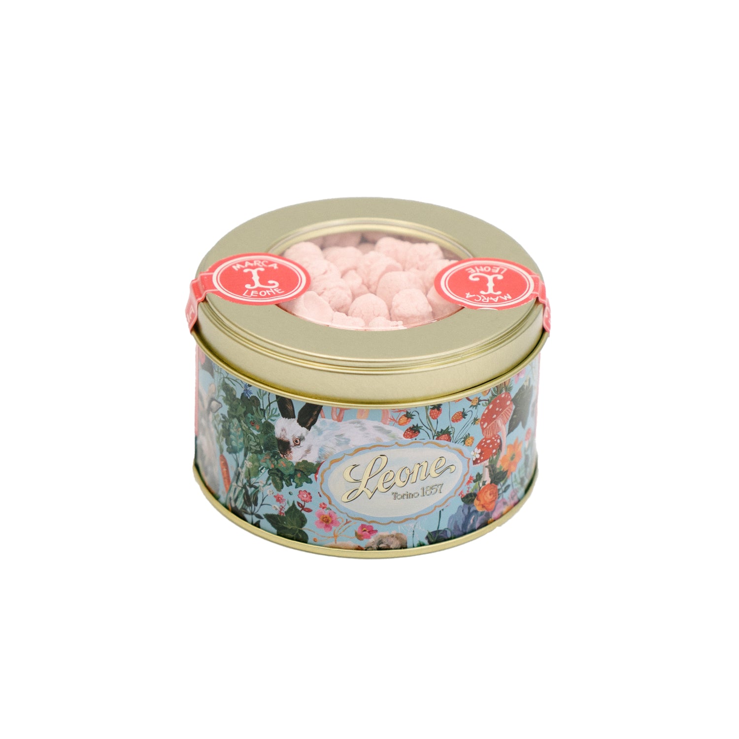 Un piccolo capolavoro da collezione: la latta illustrata da Nathalie Lété custodisce le iconiche pastiglie Leone al gusto ciliegia. Senza glutine, al sapore fruttato e avvolgente, un tocco d'arte dolce.