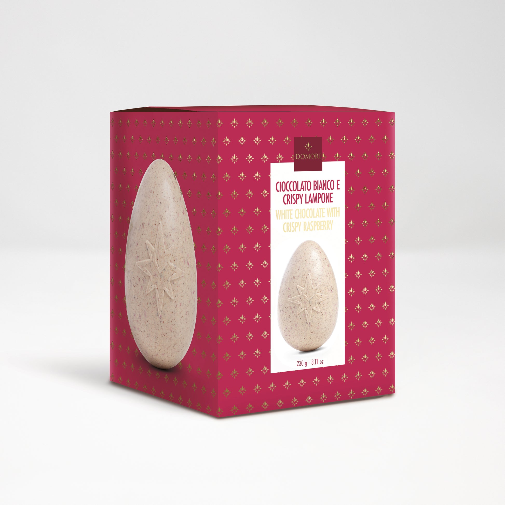 Dalla collaborazione con DOMORI, nasce l'uovo di Pasqua collezione Antologia, con cioccolato bianco e il Crunchy Rice al Lampone de gliAironi.